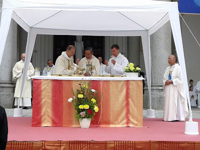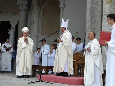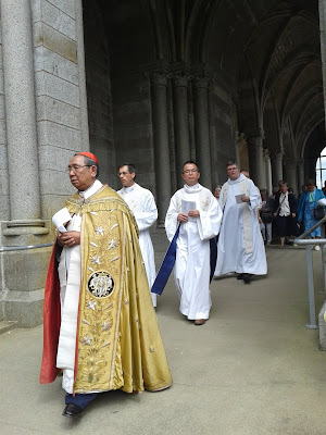La messe solennelle est présidée par le premier Cardinal du Laos Louis-Marie Ling, invité par Mgr Scherrer, évêque de Laval. Le Cardinal est assisté de Mgr Mgr Tito Banchong (Tswv Qhia Txwj Choo), administrateur apostolique de Luang Prabang.