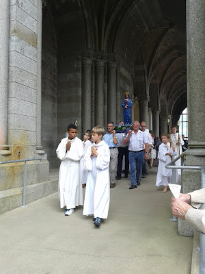 À 15 h 30, après les vêpres, la foule est partie en procession en chantant dans le parc des Oblats. Une statue de Marie d’1,2 m était portée par quatre hommes.La procession s’est terminé par la bénédiction du Saint Sacrement et une dispersion de tous les pèlerins.